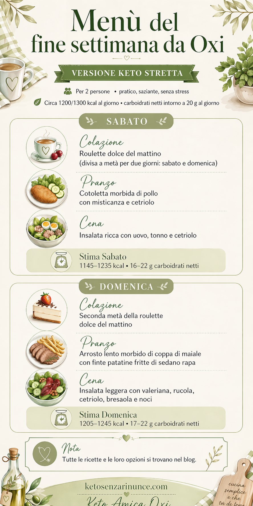 Un menù semplice, pratico e saziante per organizzare il fine settimana senza stress, restando su una linea chetogenica più controllata.